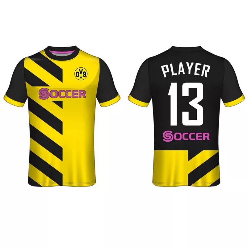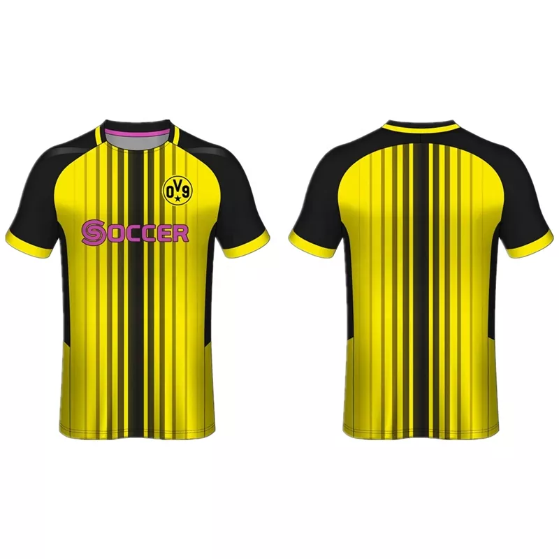సబ్లిమేషన్ ప్రింటింగ్ అనేది సాకర్ జెర్సీలకు అనువైనది ఎందుకంటే ఇది హై-డెఫినిషన్ ప్రింట్లను సౌందర్యంగా ఆకట్టుకునేలా మాత్రమే కాకుండా చాలా మన్నికైనదిగా కూడా అనుమతిస్తుంది. ఈ ప్రక్రియ సంక్లిష్టమైన నమూనాలు, లోగోలు, నంబర్లు మరియు స్పాన్సర్ వివరాలతో కూడిన జెర్సీలను ఉత్పత్తి చేయడానికి మాకు వీలు కల్పిస్తుంది, అవి విస్తృతమైన దుస్తులు మరియు వాషింగ్ తర్వాత కూడా పదునైన మరియు శక్తివంతమైనవిగా ఉంటాయి. సాంప్రదాయ స్క్రీన్ ప్రింటింగ్ వలె కాకుండా, సబ్లిమేషన్ డిజైన్ ఫాబ్రిక్లో భాగమని నిర్ధారిస్తుంది, కాబట్టి ప్రింట్ పై తొక్క లేదా పగుళ్లు ఏర్పడదు, ఇది సాకర్ జెర్సీల వంటి యాక్టివ్వేర్లకు సరైనది.